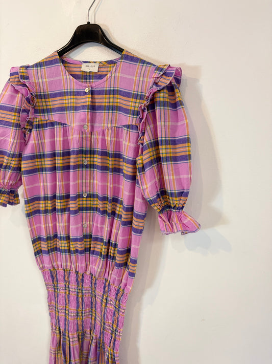 RITAVON. Vestido de cuadros en rojo, rosa y blanco