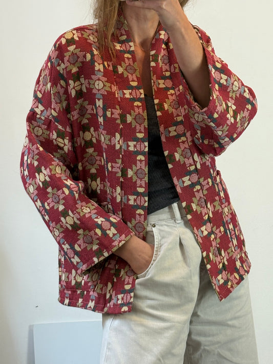 MAQUIS & CO. Abrigo largo cuadros solapa terciopelo
