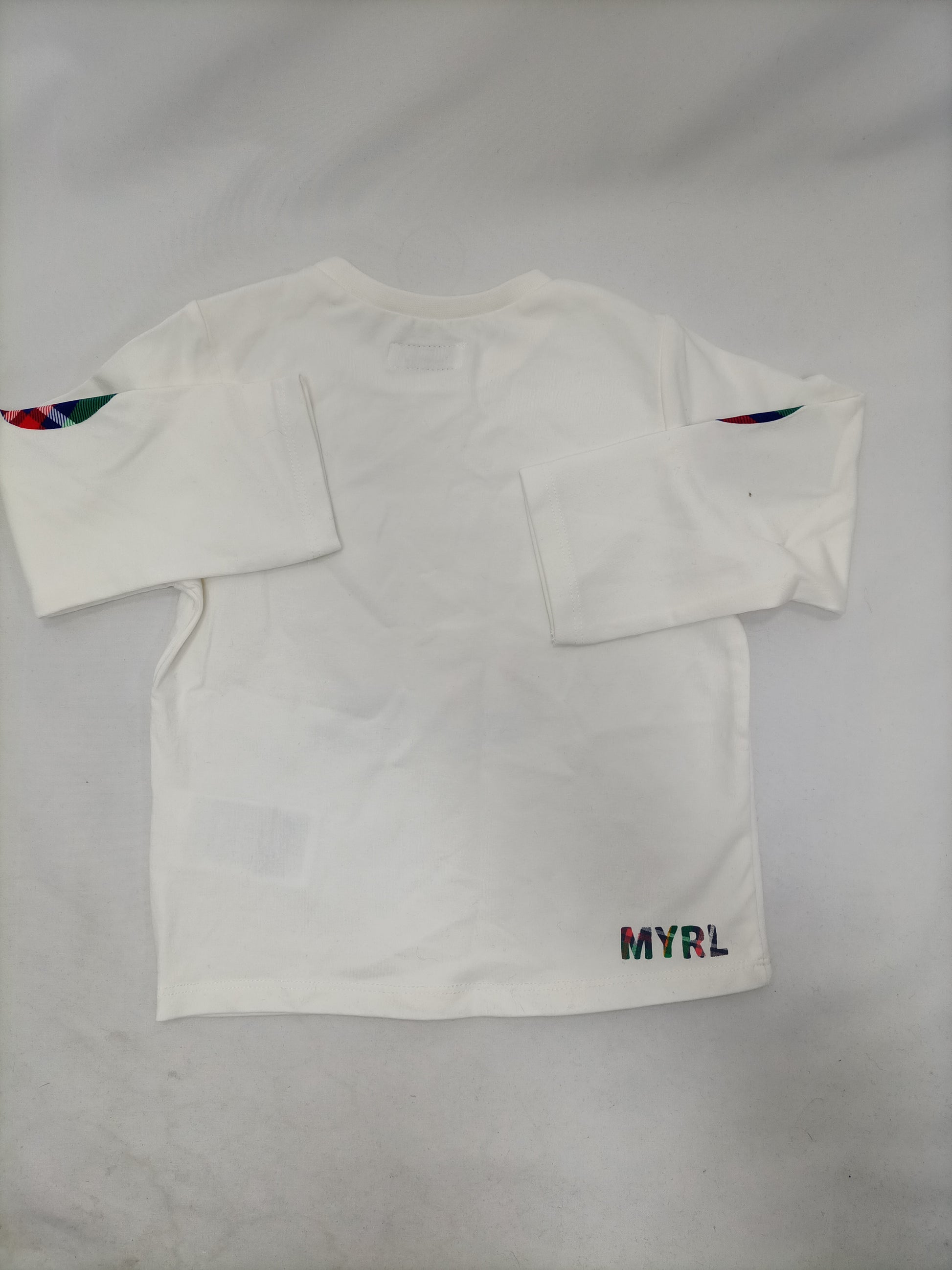 Camiseta blanco roto con estampado de ositos y coderas en cuadros escoceses. Elastica con botones en el cuello. Largo 36 cm