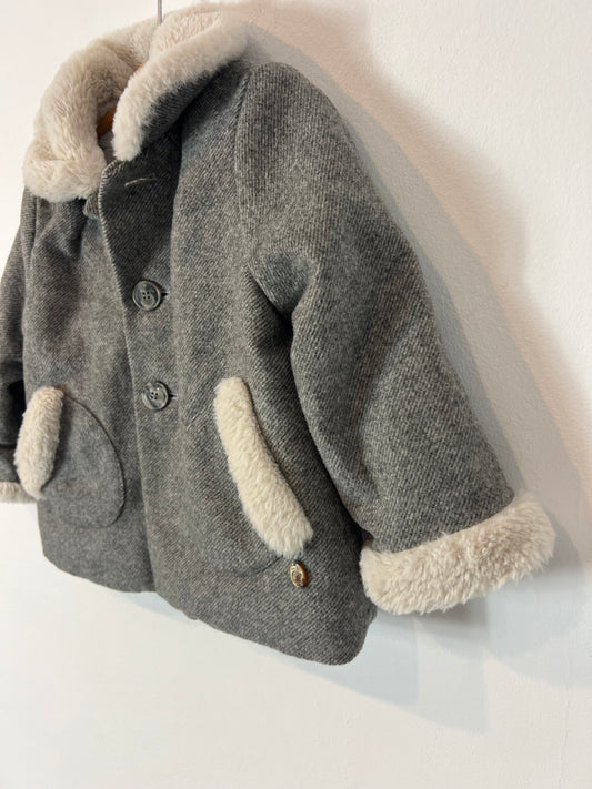 PILI CARRERA. Abrigo gris jaspeado lana. T 12 meses