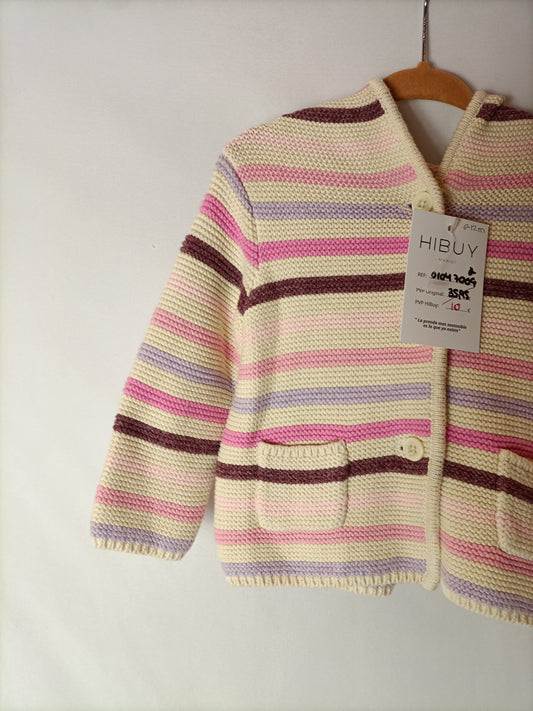 GOCCO. Chaqueta punto blanca volante. T 9- 12 meses