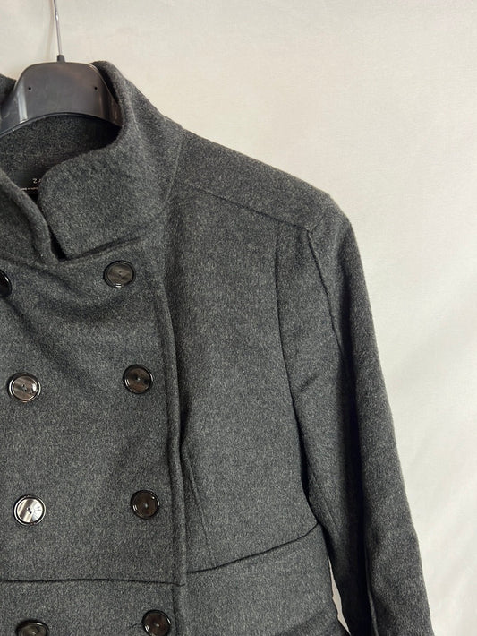 ZARA. Abrigo paño gris doble botonadura . T M