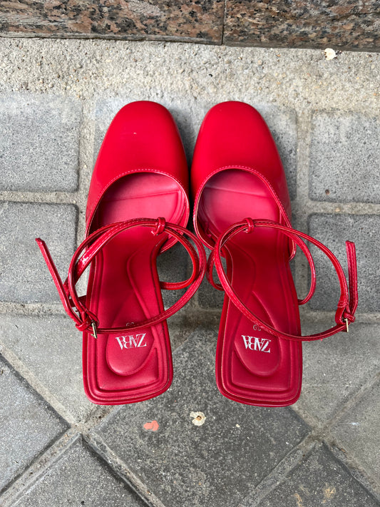 SOPHIE&LUCIE. Sandalia piel roja plataforma. T 38