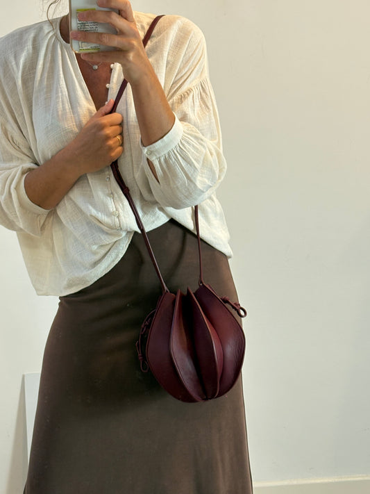 SANDRA FRECKLED. Bolso burdeos bandolera piel