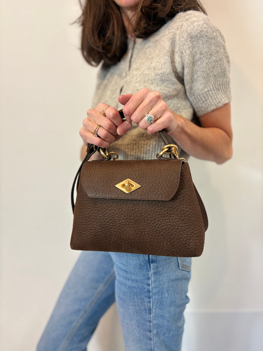 PETITE MENDIGOTE. Bolso estampado con piel asa larga