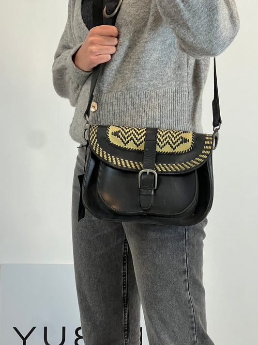 MAISON SCOTCH. Bolso negro piel detalle solapa
