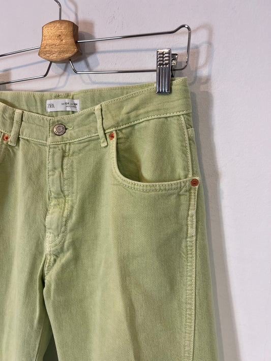 ZARA. Denim verde claro detalle costura . T 13-14 años (XS/S)