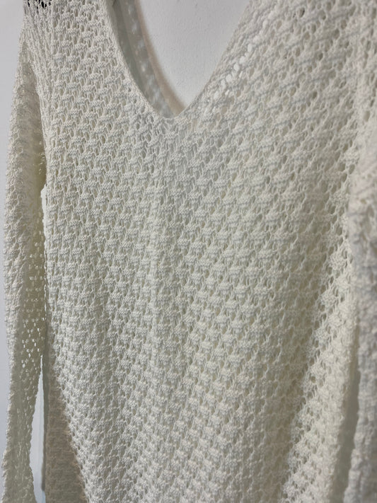 DENNY ROSE. Vestido midi blanco bordados en negros