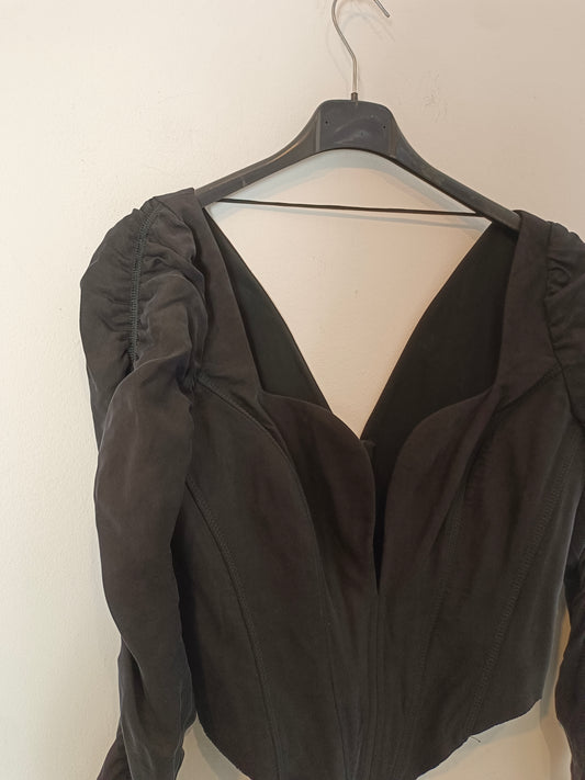 ZARA. Cazadora piel con tachuelas y bordados T.s