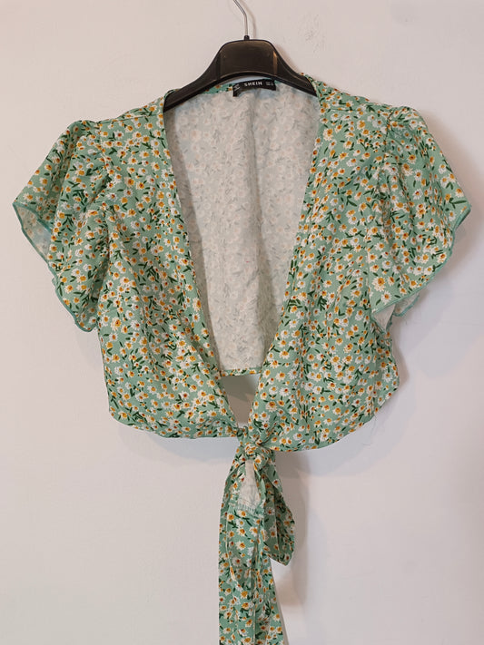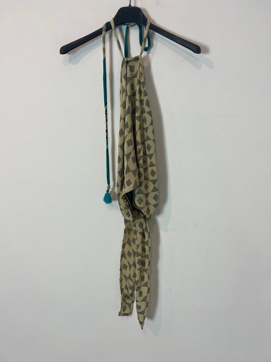BASYCO. Top estampado anudado seda verdes. TU (S/M)