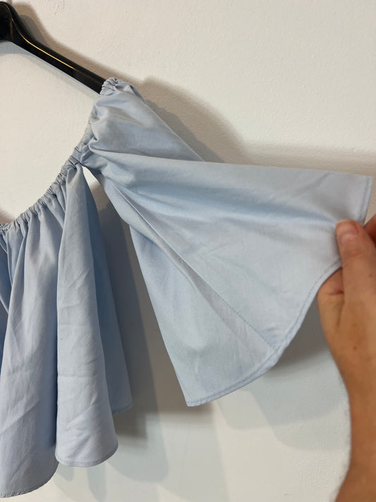 N/NICHOLAS. Top azul palabra de honor mangas T.XS