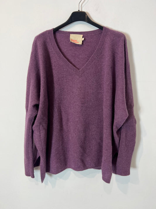 ABSOLUTE CASHMERE. Jersey cashmere morado cuello pico. T S