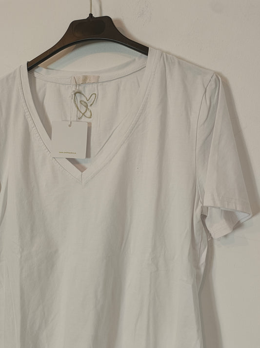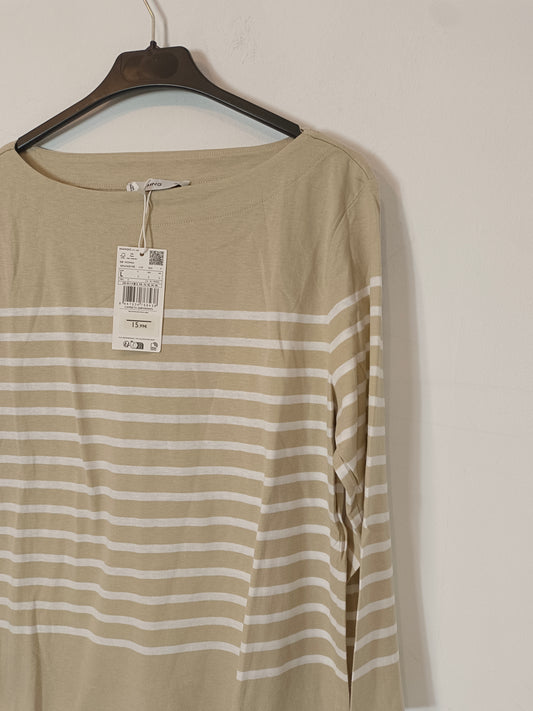 OTRAS. Jersey beige canalé cuello vuelto. T L/XL