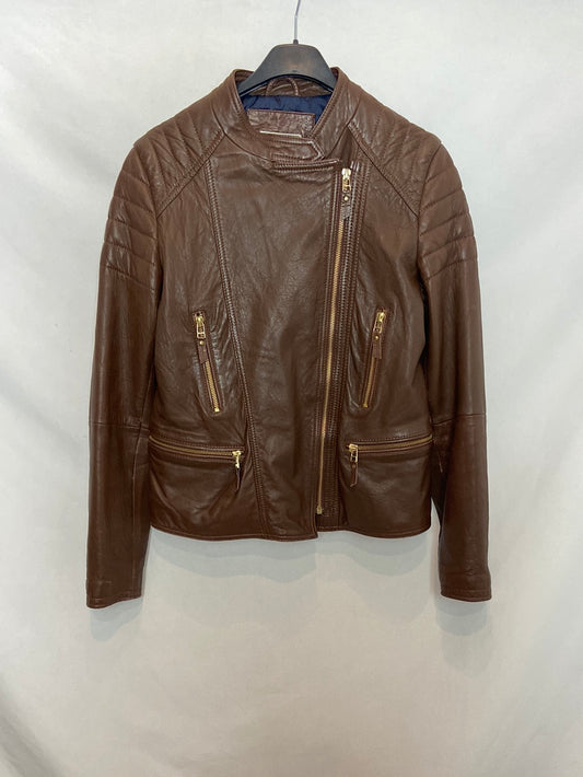 MASSIMO DUTTI. Chaqueta de piel marrón T. 13-14 años (S)