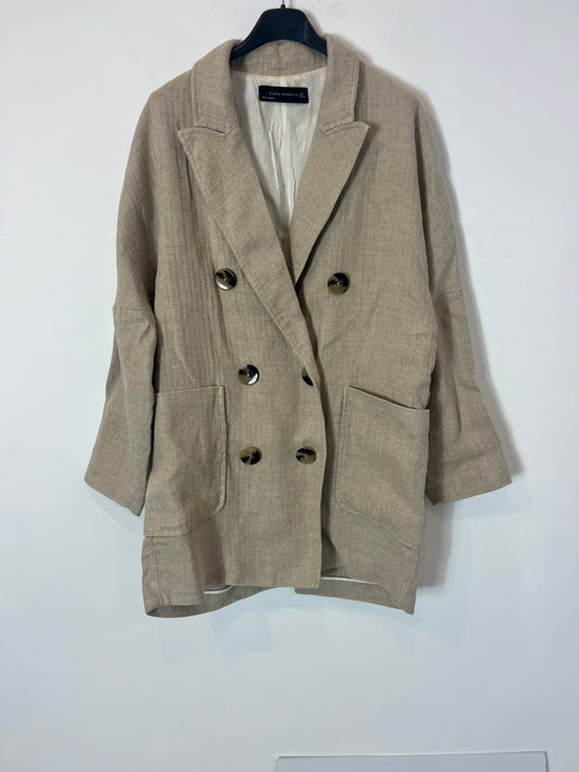 MASSIMO DUTTI. Blusa beige fruncido escote. T S
