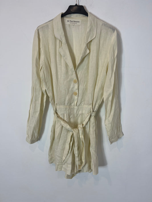 ALL THAT REMAINS. Vestido corto beige lino rustico T.6(xs/s)
