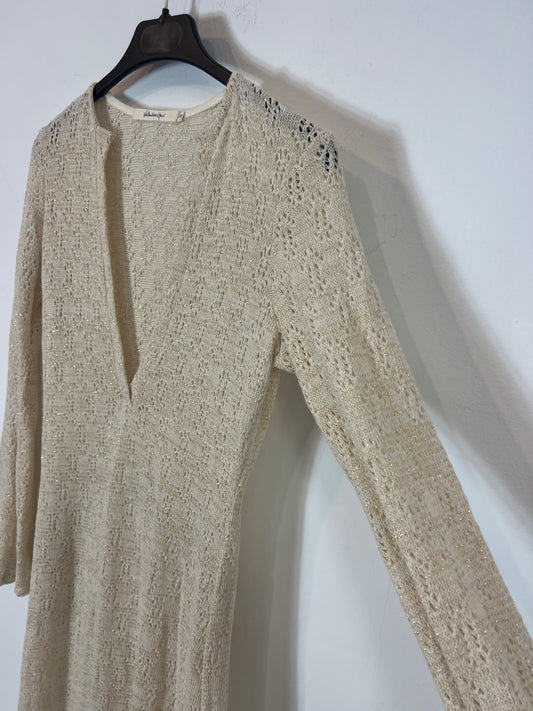 VALENTINA GARI. Vestido beige punto hilos T.s