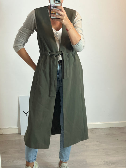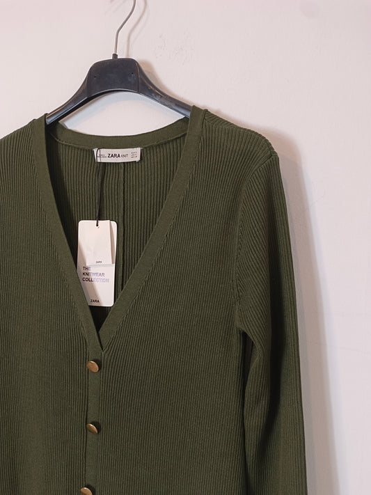 ZARA. Vestido largo canalé botones dorados. T S