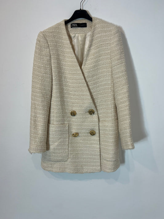 ZARA. Blusa beige cruzada detalle mangas. T XS
