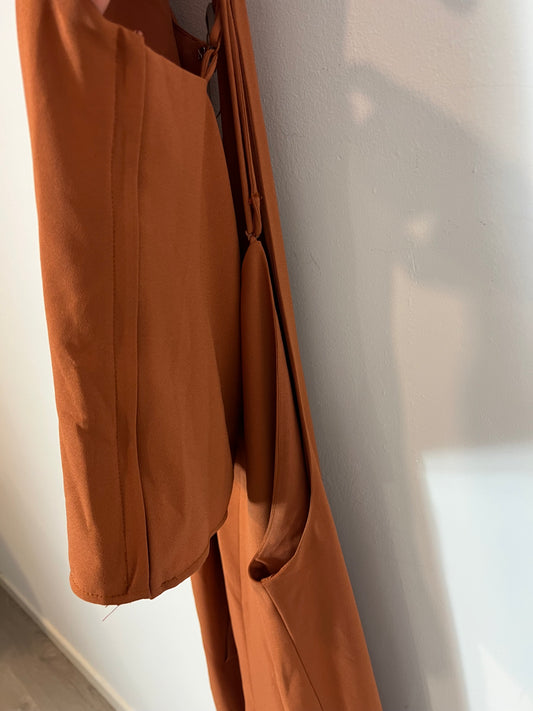 STRADIVARIUS. Pantalón camel pata ancha. T 36