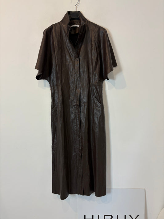 ADOLFO DOMINGUEZ. Vestido midi marrón efecto piel