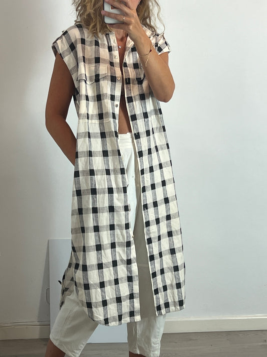 MASSIMO DUTTI. Vestido largo camisero cuadros. T 38