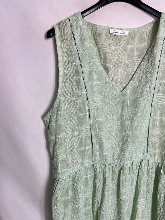 SOUTHER COTTON. Vestido midi textura verde claro. T L