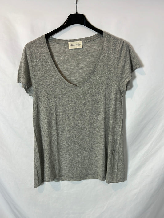 AMERICAN VINTAGE. Camiseta gris claro jaspeado algodón. T M