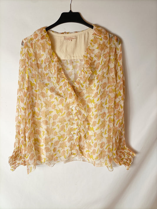 LOUISE MISHA. Blusa semi transparente hilos dorados. T 38