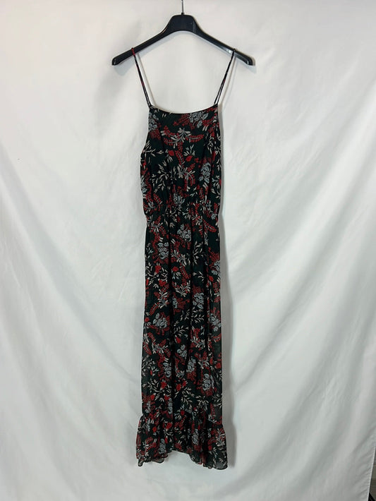 MAJE. Vestido negro corto fluido estampado. T 1 (S)