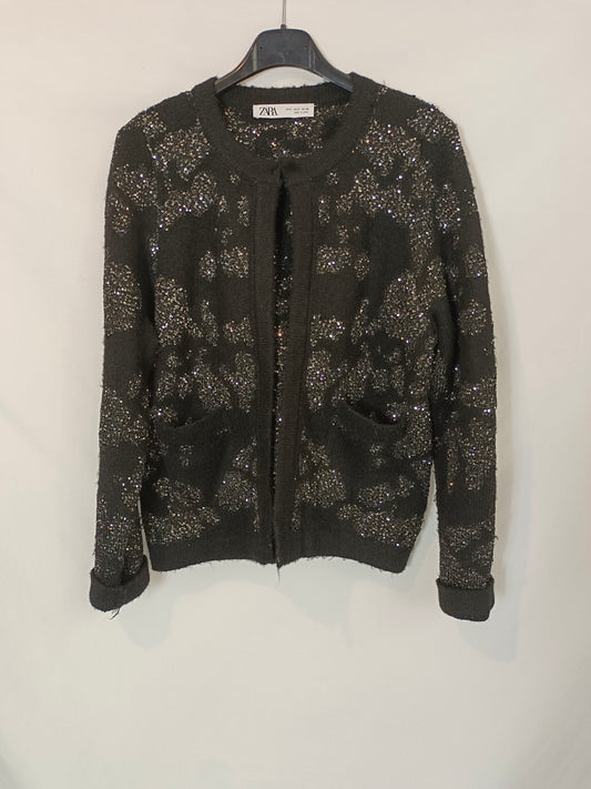 ZARA. Vestido negro mangas farol. T 13-14 años (XS)