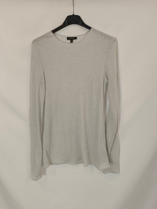 MASSIMO DUTTI. Top gris detalles metálicos T.s