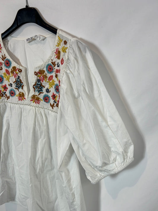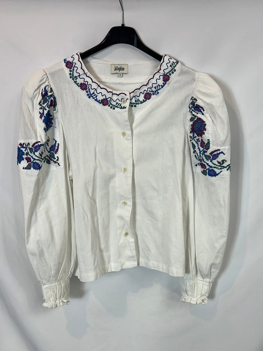 JOSEPHINE. Blusa blanca bordada hombreras T.s