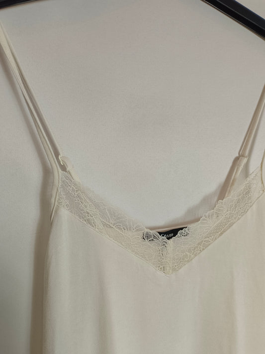 OTRAS. Vestido corto encajes y transparencias. T XS