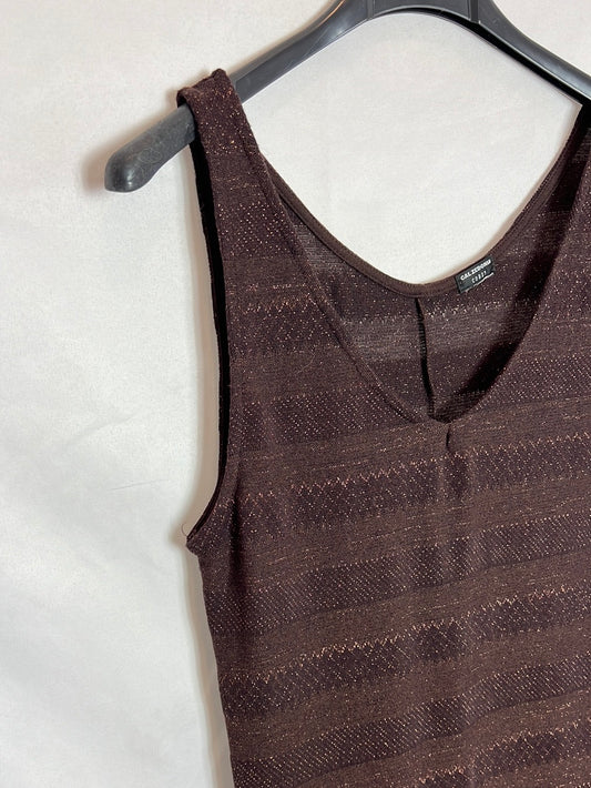 CALZEDONIA. Vestido largo marrón hilos brillo. T S