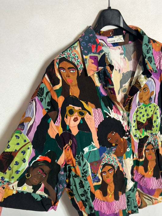 PULL&BEAR . Camisa manga corta estampado caras. T L