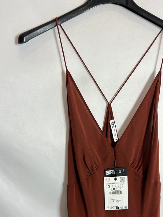 ZARA. Vestido mido doble capa lentejuelas y gasa. T M