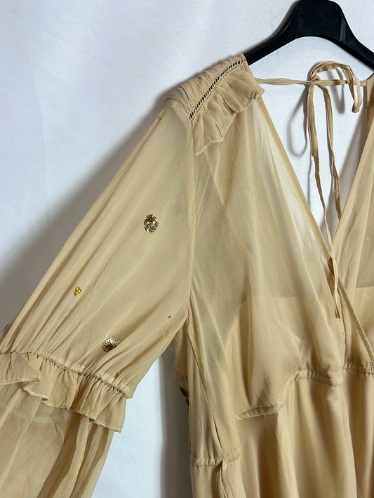 ASOS. Vestido vaporoso detalle pedrerías. T 46