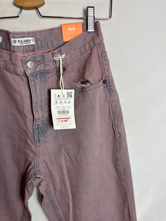 PULL&BEAR . Denim rosa efecto desgastado mom fit. T 38