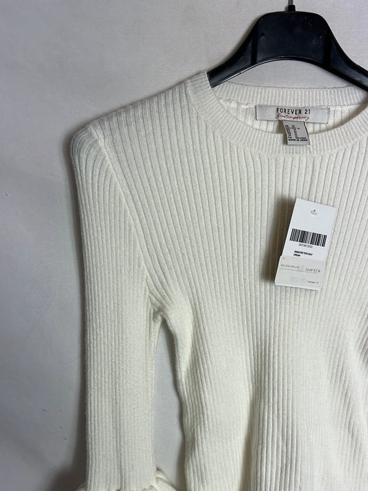 FOREVER 21. Jersey blanco mangas volantes. T M