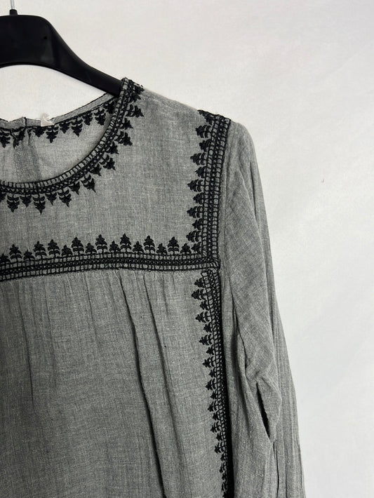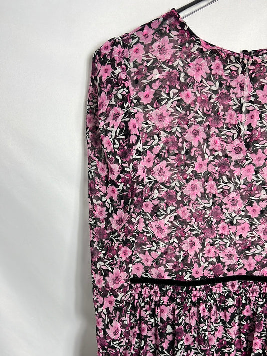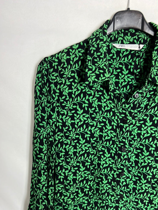 ZARA. Vestido flores midi detalles terciopelo . T S