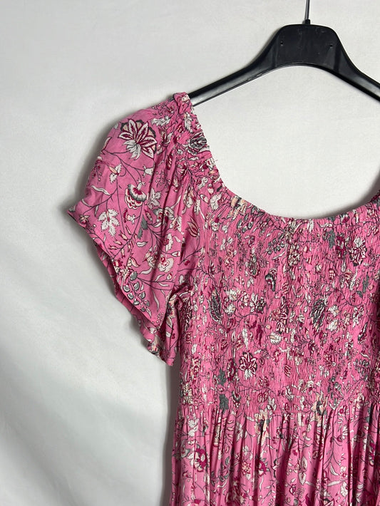 VIDAH. Vestido midi rosa estampado. T U (s/m)