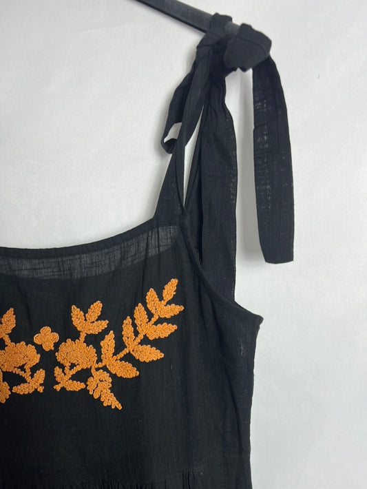 CORTEFIEL. Vestido negro algodón bordados. T S (M)