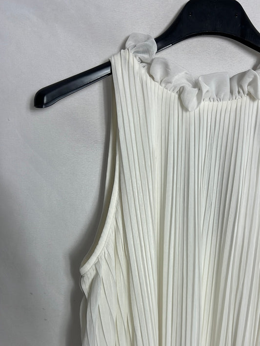 TOPSHOP. Vestido blanco plisado lazada negra. T S