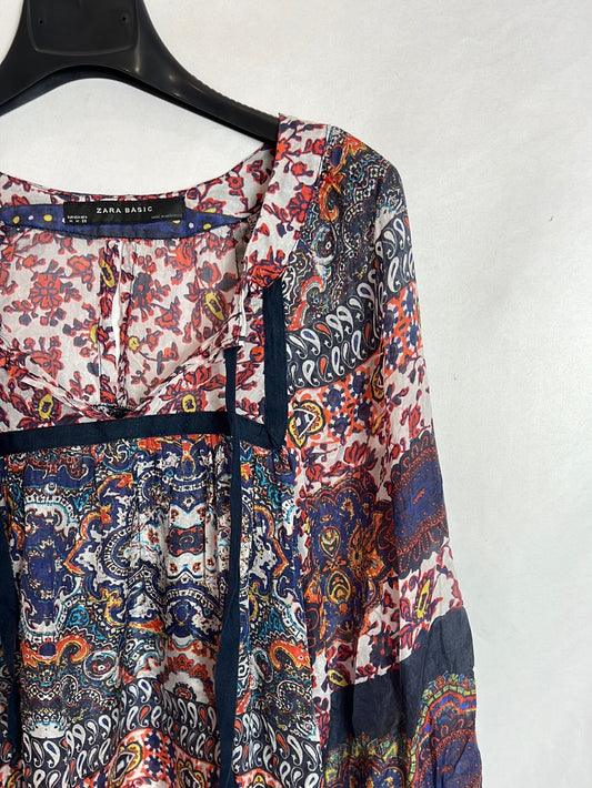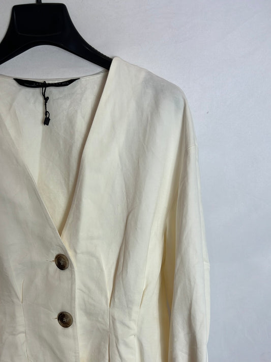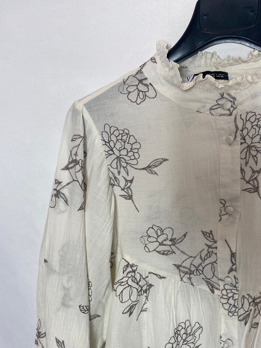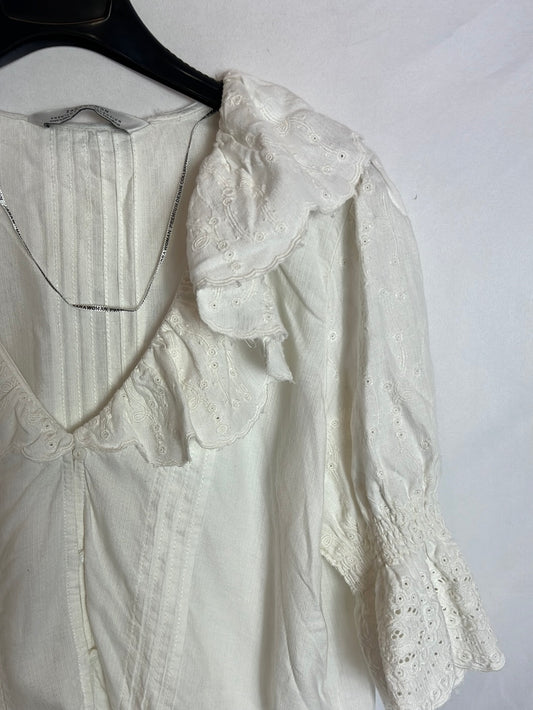 ZARA. Blusa blanca algodón volantes T.13/14(xs)