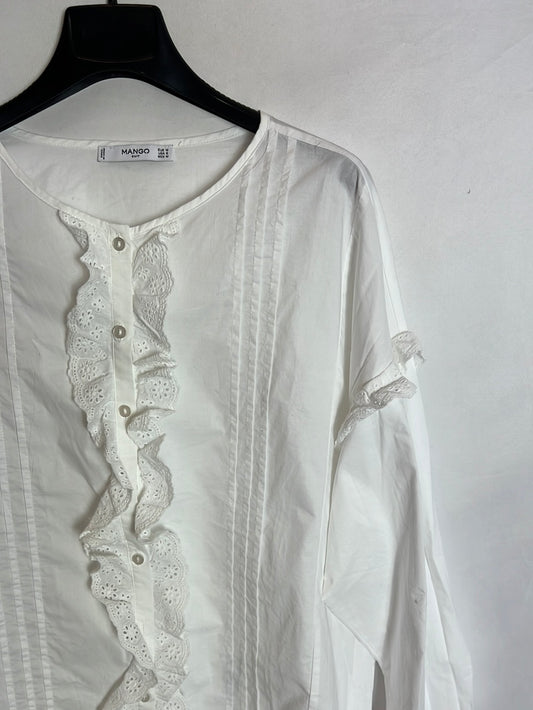 ZARA. Blusa blanca detalles encaje y volantes. T 13-14 años (S)
