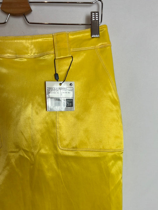 ADOLFO DOMINGUEZ. Falda corta amarilla satinada. T 38