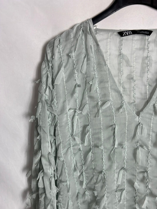 RENATTA&GO. Chaqueta verde fina efecto lino. T M/L