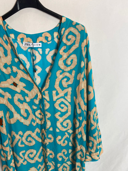 ZARA. Tacón talón descubierto azul metalizado. T.37