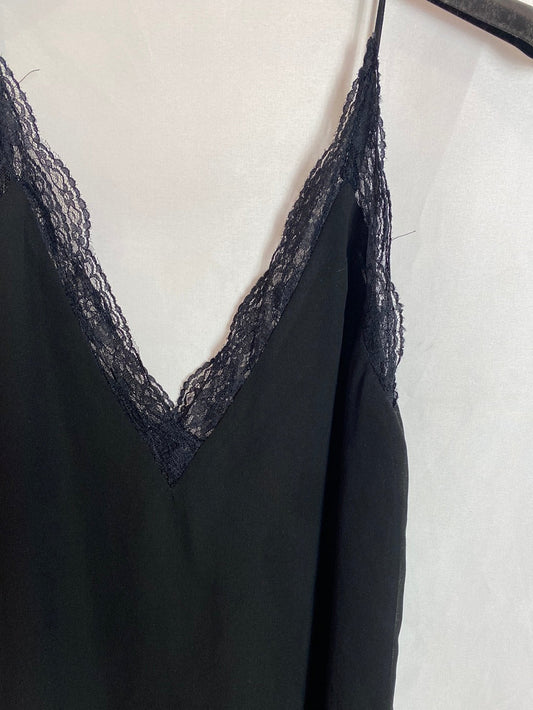 MANGO. vestido midi encaje con detalles rosas. T.S